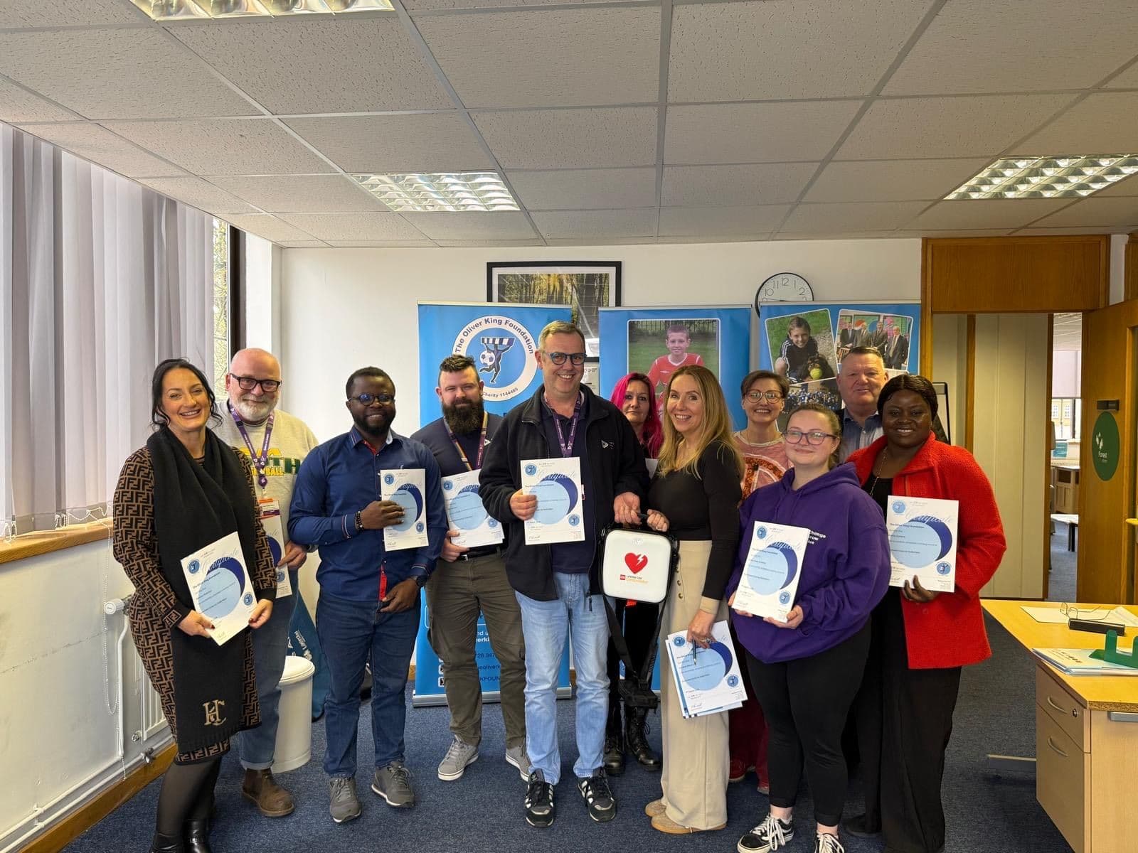 Presented by Mark King OBE, Founder of the Oliver King Foundation, this life-saving device replaces their previous CR Plus, ensuring they’re equipped with the latest defibrillator to help save lives.