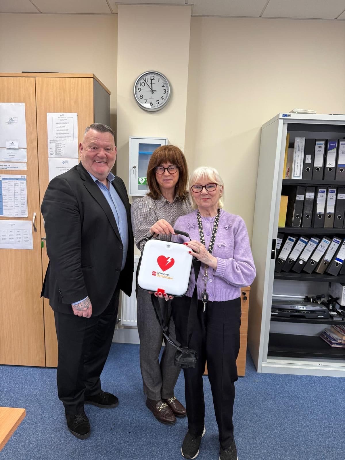 Gemma and the team at CGL Maidstone proudly receiving their new CR2 defibrillator