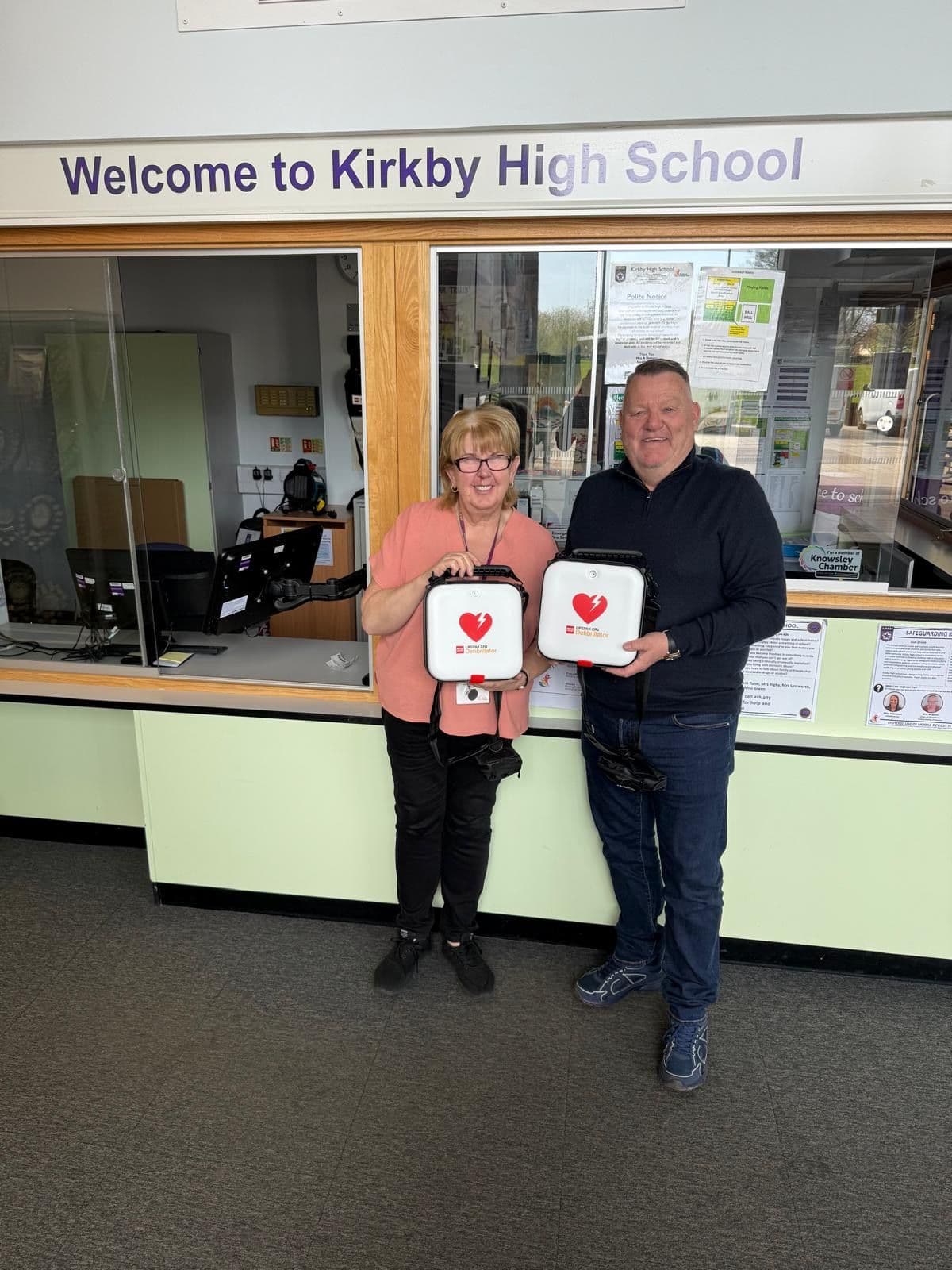 Lynn from Kirkby High School received 2 new CR2 defibrillators following staff training from Mark King OBE and the The Oliver King Foundation 💙
